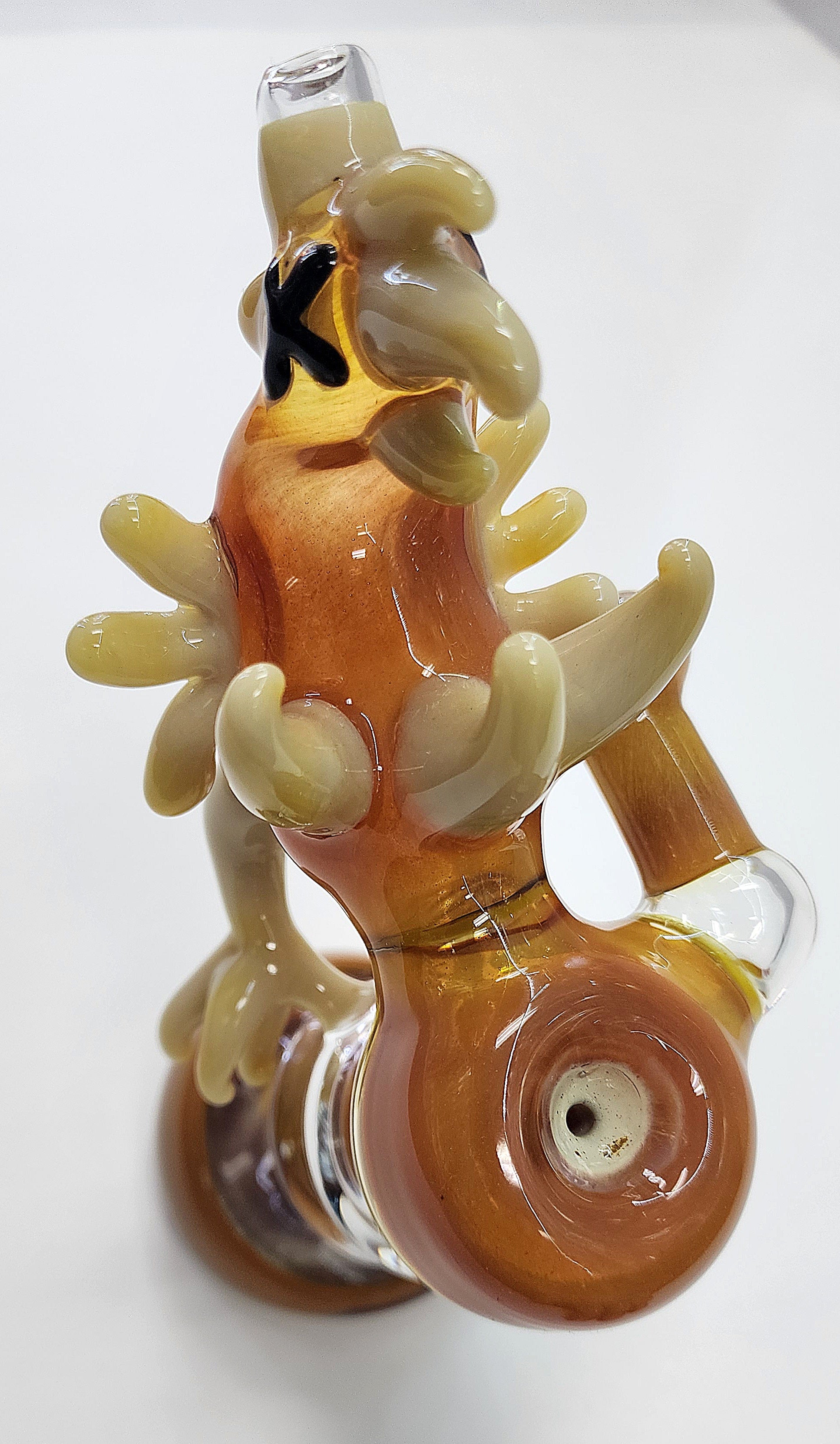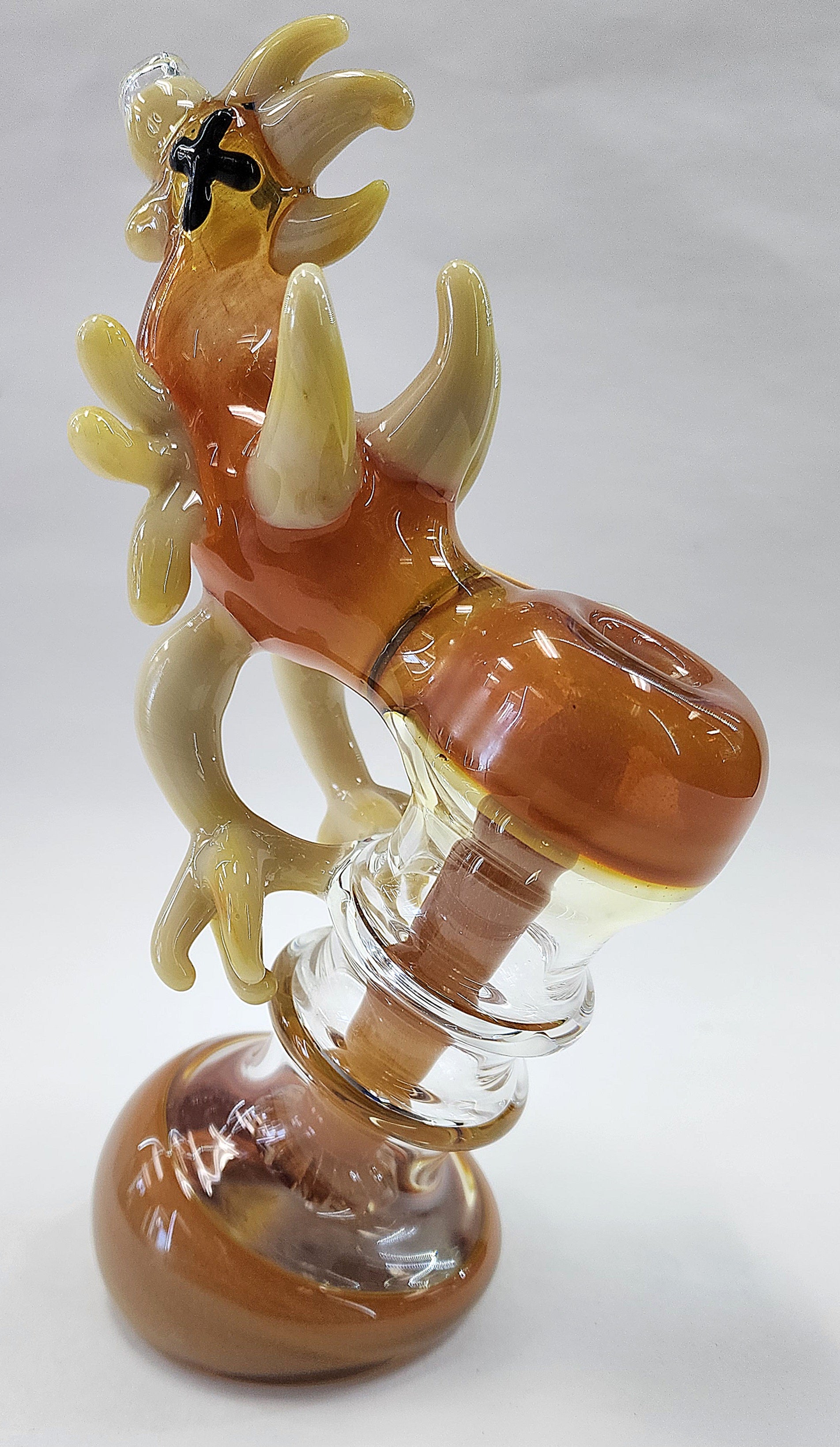 Crafted by Josh "JOP" Openaker, Chicken Bubbler is the ultimate bubbler for all water pipe enthusiasts. With its badass design and exceptional functionality, this bubbler ensures a smooth smoking experience every time. Made with high-quality American glass, This is a must-have for any serious smoker and/or collector. Sits about 8" Tall