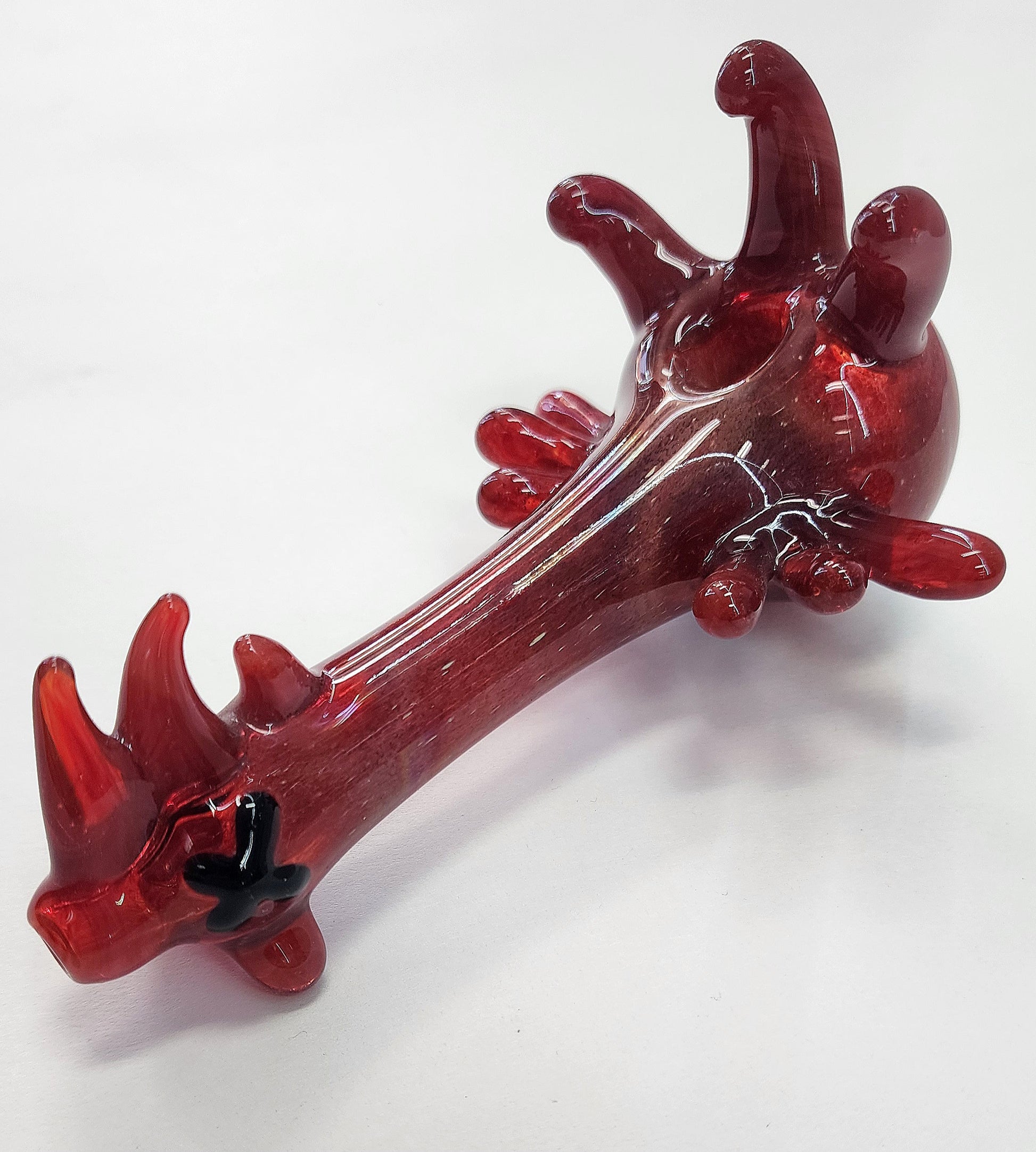 Custom Chicken pipe from Josh Opendaker. This pipe was made back in 2011 and has been in our collecton for awhile now. The red color on this pipe is so dope. Pipe is about 6" in size.