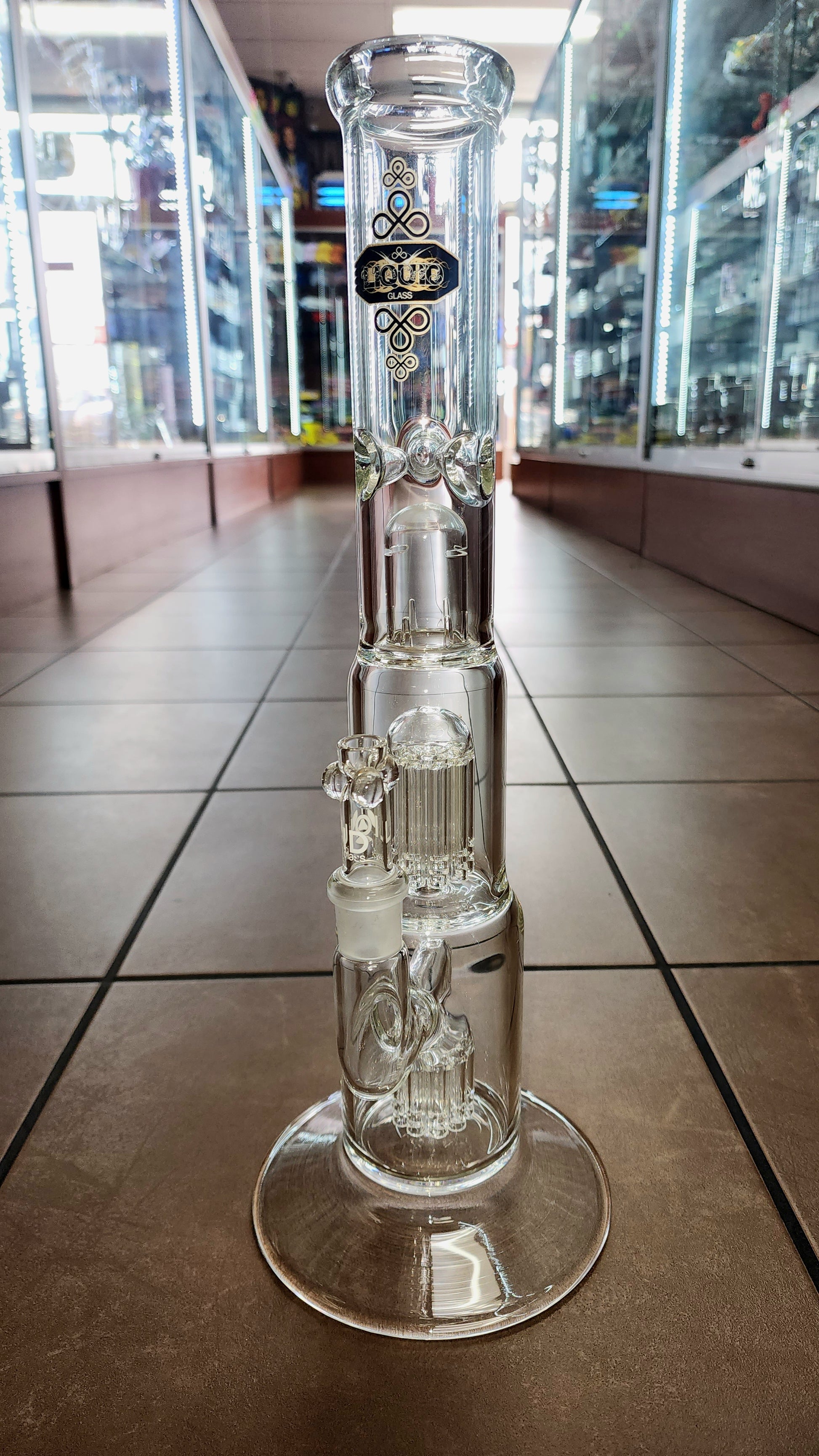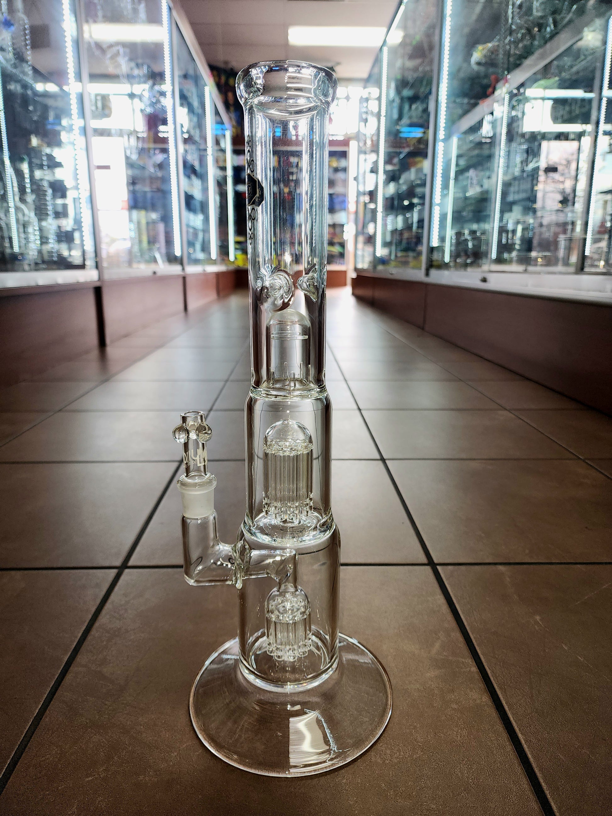 This Liquid Sci-Glass measures at 17" tall with a wide 6" base. Comes with the custom Sci-Glass 18mm bowl.