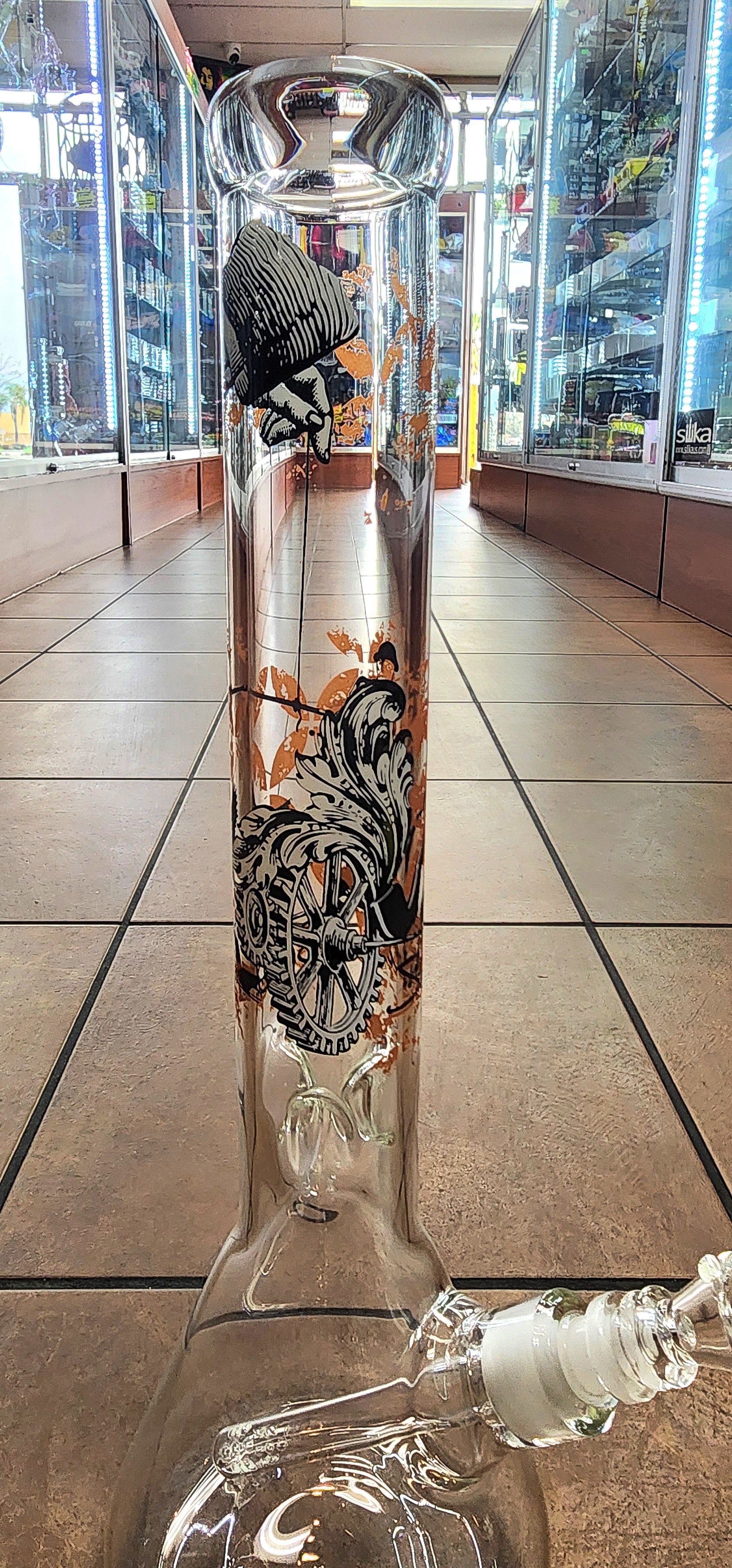 Custom Sheldon Black Beaker Bong. This rig has a height of 17''. Comes with Sheldon Blacks 14mm flower bowl down stem.